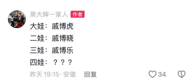 公开资料显示,黑大婶本名张马燕,在这之前已经生育三个儿子,分别是09年的大儿子戚博虎,11年的二儿子戚博晓,23年的小儿子戚博乐。