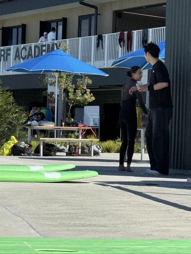 同行还有相识的伙伴,私人行程不需要对外公开。两人被偶遇的时候是在度假村,何超莲当时身穿了黑色的连体泳装,周围还有很多滑板,看样子是要去滑浪,只见她打着赤脚,兴致勃勃的样子。而窦骁就站在她的身边,他一身黑色的装扮,手上还拿了一杯咖啡,他的装扮很休闲,不像是要下水的样子,夫妻俩在场甜蜜互动,何超莲一脸笑容。何超莲是在泳池中玩滑水,泳池有人工造浪,看起来很有趣,而没有下水的窦骁就在泳池边上观看妻子玩乐,他全程全神贯注地盯着。