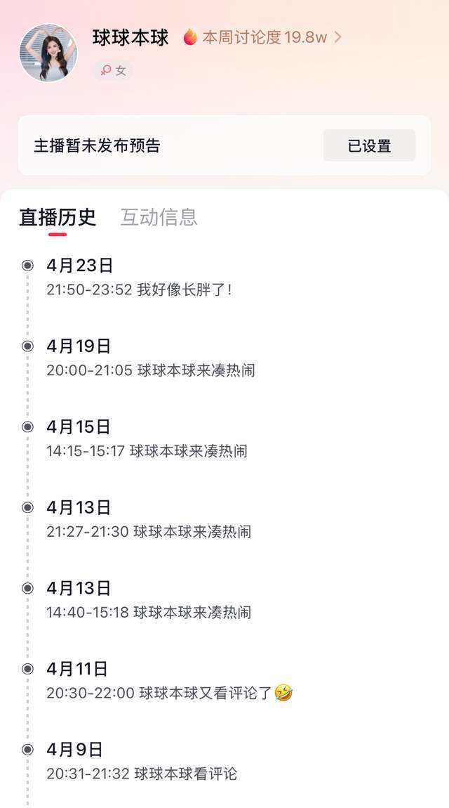而球球自从进入四月份之后(也就是入驻短视频没有多长时间),便开始频繁直播(第四个细节)。