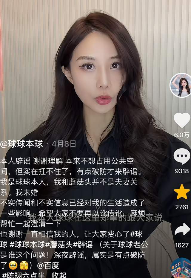 至于婚姻,球球表示,她与蘑菇头根本不是夫妻的关系,目前是单身状态,这一次传言还为其带来了不小的麻烦,为此,特地选择辟谣。